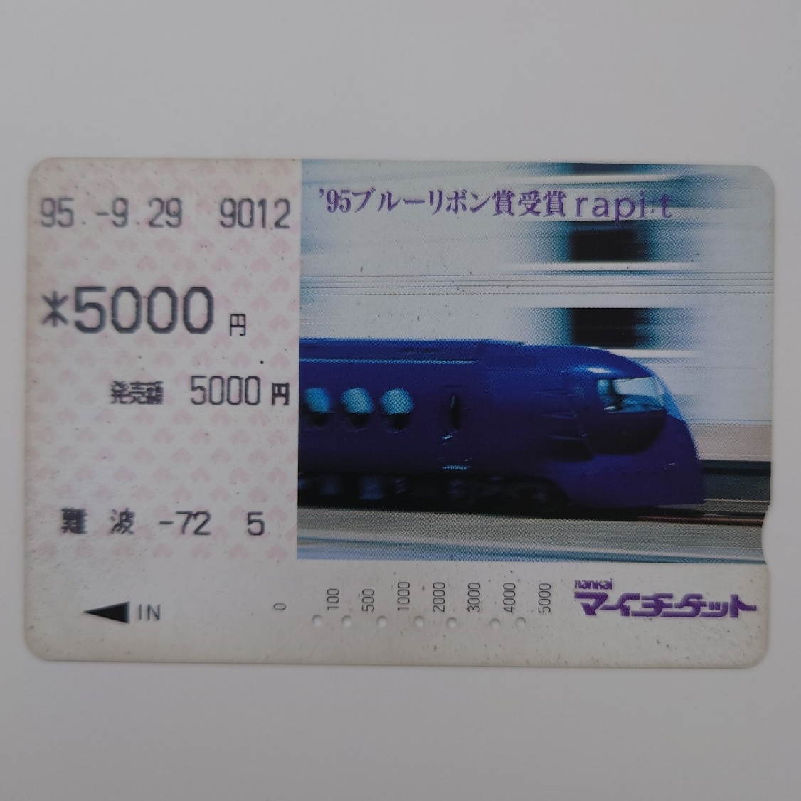 - 【使用済】nankaiマイチケット ’95ブルーリボン賞受賞 rapi:t ラピート 5000円券 南海電気鉄道