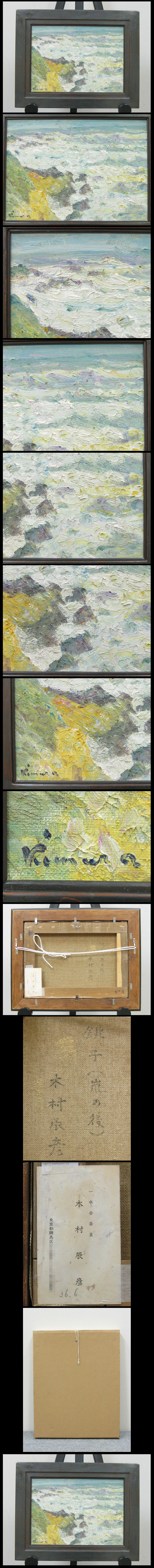 - 【心庵】額装 木村辰彦「銚子(嵐の後)」油彩 F4号/肉筆 真作 紙タトウ付 B034