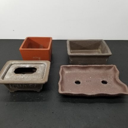 - 園芸用品 植木鉢 盆栽鉢 ミニ盆栽 長角 一部落款あり 4鉢まとめ A9780A06