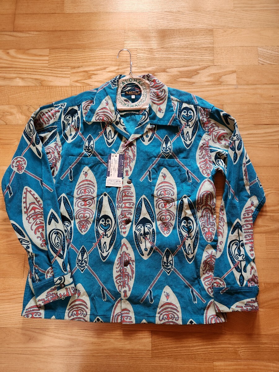 - 新作 送料込★東洋 SUN SURF サンサーフ SS29581 GOD'S SHIELD CORDUROY OPEN SHIRT コーデュロイオープンシャツ ブルー XL