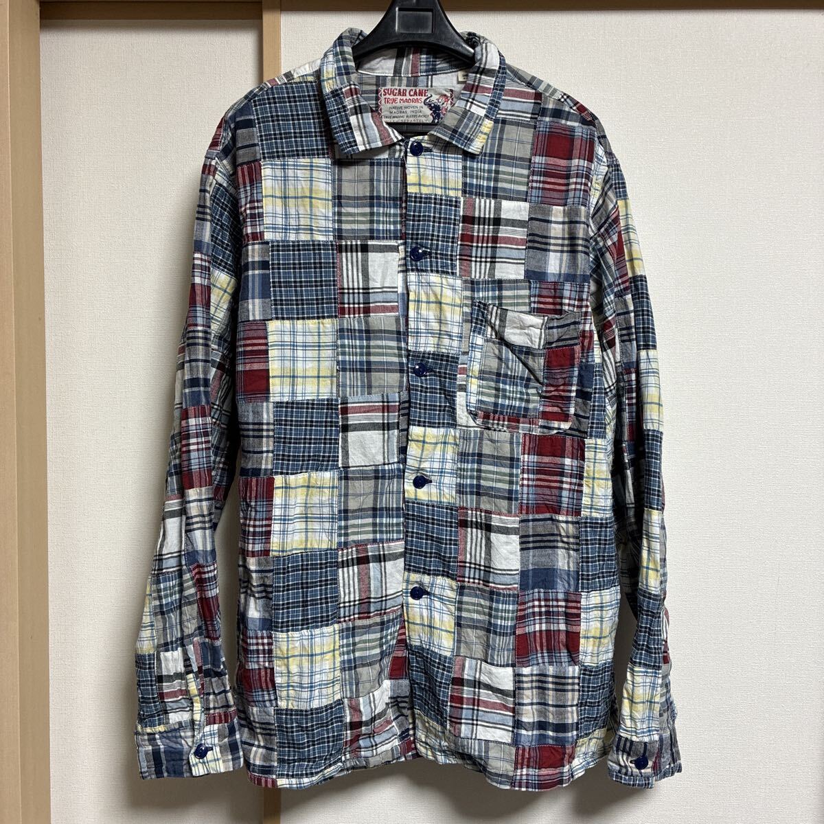 - 【極美品】SUGAR CANE シュガーケーン マドラスチェック パッチワーク ボタンダウン ワークシャツ 長袖 オフホワイト Lサイズ SC29514
