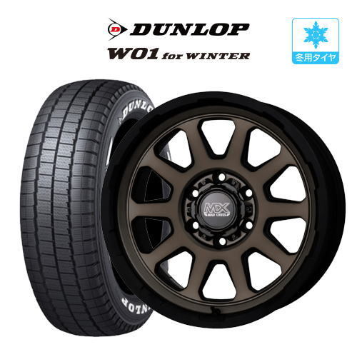 - スタッドレス タイヤ ホイール 4本 6穴139 マッドクロス レンジャー ダンロップ W01 for WINTER 195/80R15 ハイエース