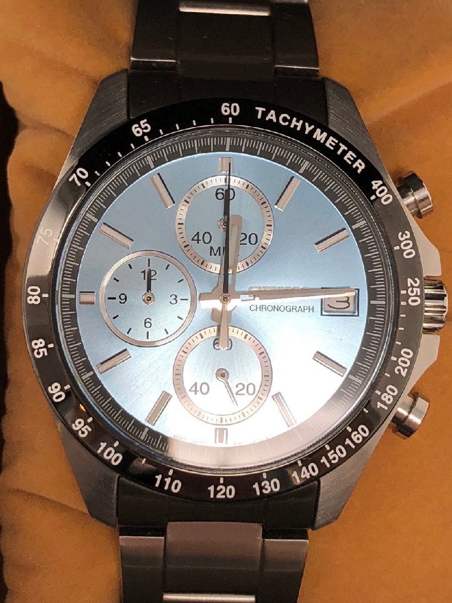 ◆SEIKO セイコー 腕時計 スピリット クロノグラフ 8T67-00C0 水色文字盤 メンズ 中古◆19195