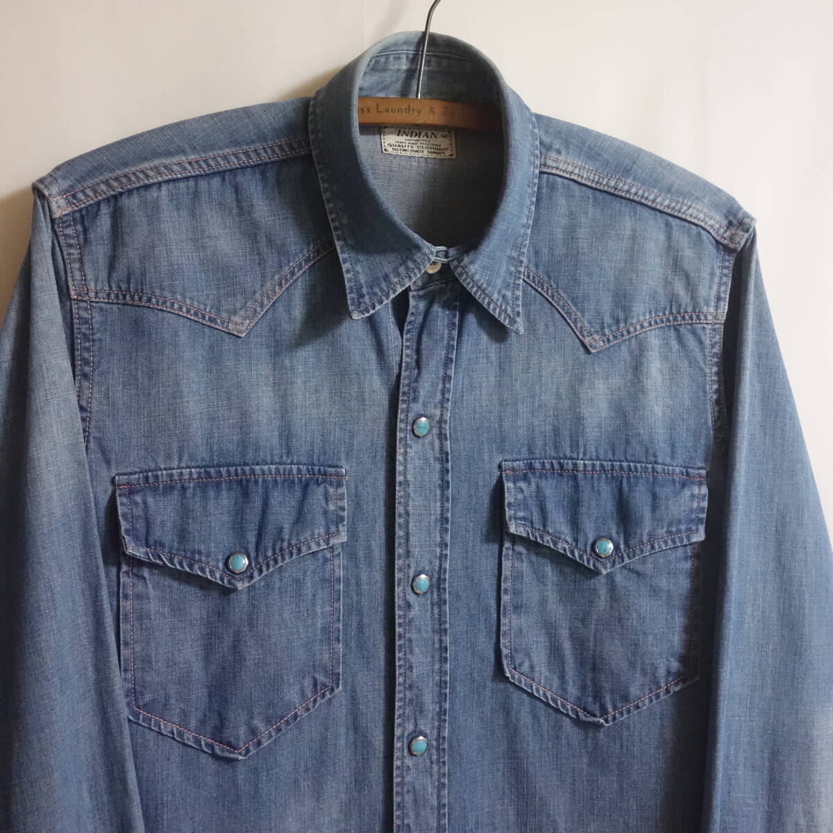 - 【東洋 インディアンモーターサイクル ヘビーシャンブレー ウエスタンシャツ M】IM25195 ターコイズボタン デニム