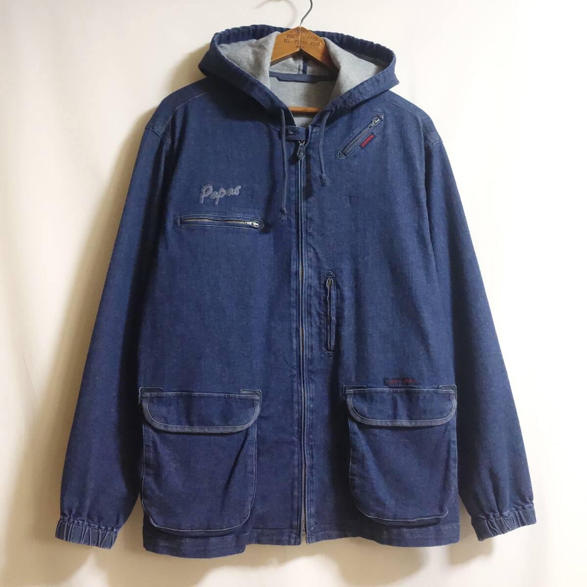 - 【PAPAS パパス ストレッチデニム フード付き ジャケット 48(M)】D0421FJM001 ロゴ刺繍 フィールドコート ヨットパーカー