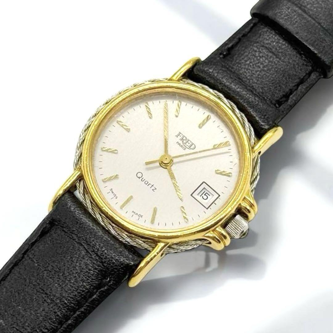 - FRED 腕時計 クォーツ アナログ コンビカラー シルバー ゴールド フレッド 時計 QZ デイト ラウンド コンビ 3針 3268