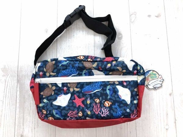 - JAL ジャル 日本航空 沖縄 ノベルティ 美ら海水族館 スーベニア ウエストポーチ カバン バッグ レディース メンズ 青 赤