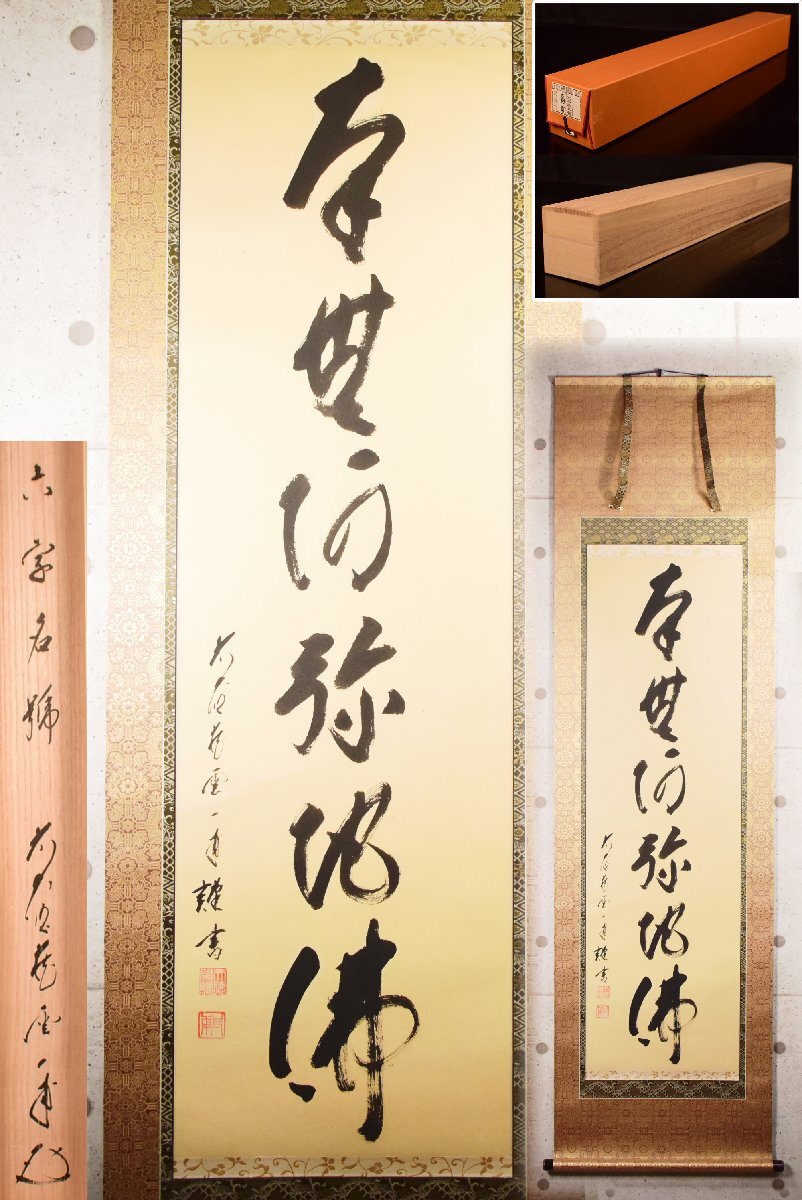 X516 【泉美】矢野一甫「六字御名號 南無阿弥陀仏」一行書 書画 掛軸 軸 二重共箱入