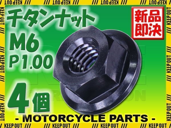 メール便OK!M6 P1.00 チタンナット フランジナット 4個セット 六角ナット ブラック 6mm ピッチ1.0 バイク 車 自転車 カスタム 軽量化 交換