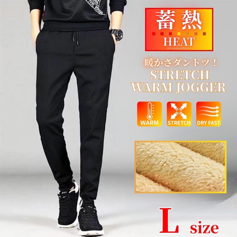 - 裏ボア ジョガーパンツ スウェットパンツ メンズ レディース 秋冬 暖パン 裏起毛 あったか 裏シープ ブラック L