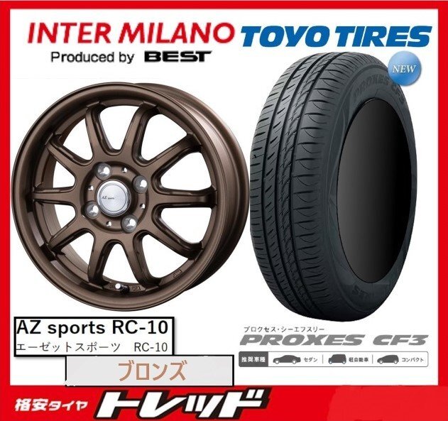 > 数量限定 2023年製)新横浜師岡店 新サマータイヤアルミ4本set AZスポーツ RC10 14インチ4.5J4穴100+45 TOYO プロクセス CF3 165/65R14