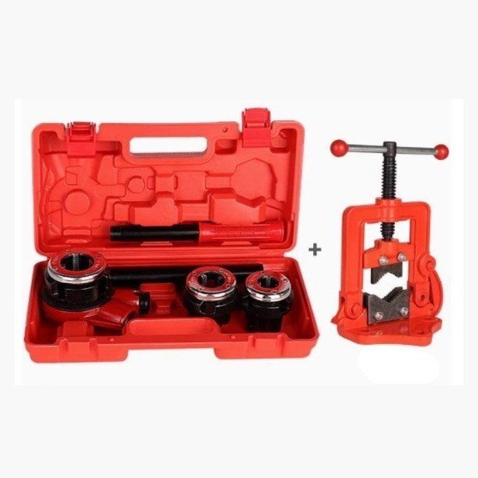 - 金属パイプねじ切り機 手動 1/2-1 ラチェット パイプねじ切り機セット ポータブル ハンドヘルド タッピング マシン クランプ付き