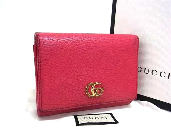 > 1円 GUCCI グッチ GGマーモント レザー 三つ折り 財布 ウォレット 札入れ 小銭入れ カード入れ レディース ピンク系 GB2496
