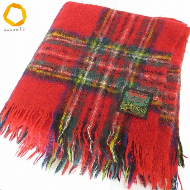 - #we ヘザーブレイ HEATHER BRAE ブランケット 赤系 マルチ チェック柄 モヘア スコットランド製 ヴィンテージ レディース [969576] k01