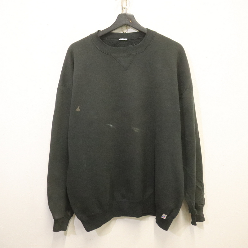> A790 2000年代製 RUSSELL ラッセル スウェット トレーナー■00s 約XLサイズ ブラック 黒 無地 前V 古着 アメカジ ストリート 90s 80s 70s