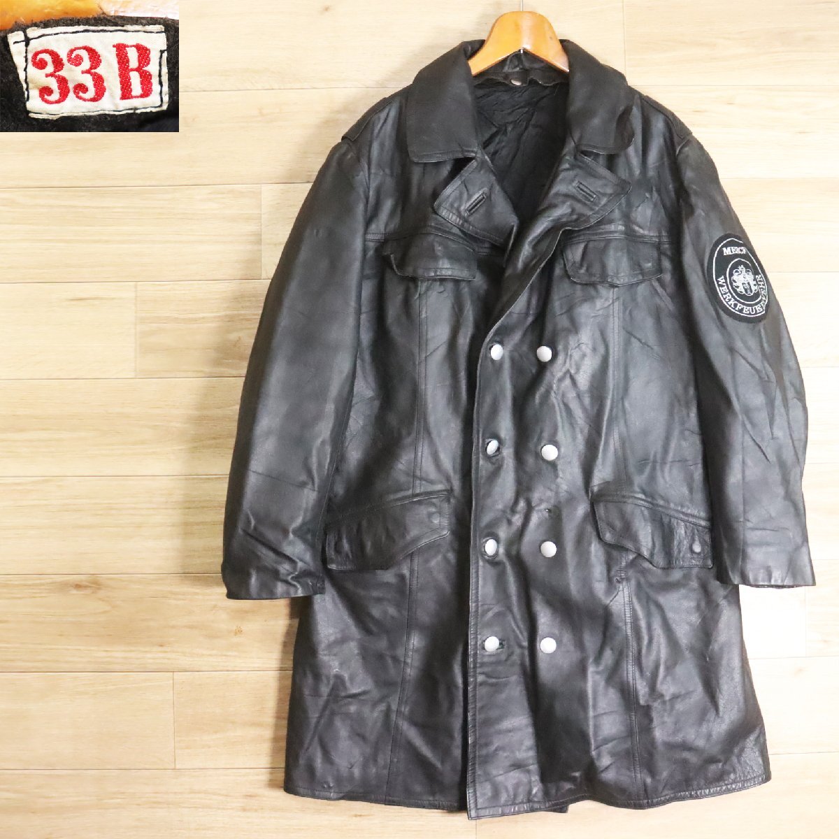 > A7S/Y5.9-8 ユーロ古着 ドイツ警察 ポリスマンコート 本革 レザージャケット ダブルブレスト カーコート ワッペン ヴィンテージ