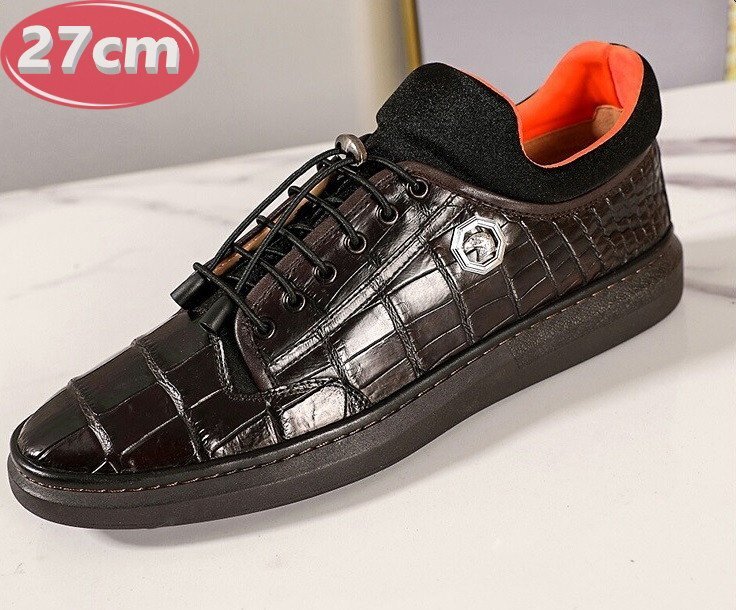 - クロコダイルレザー スニーカー 最高級 ワニ革 クロコダイル 靴 メンズシューズ 革靴 ダークブラウン 27.0cm 【n790】