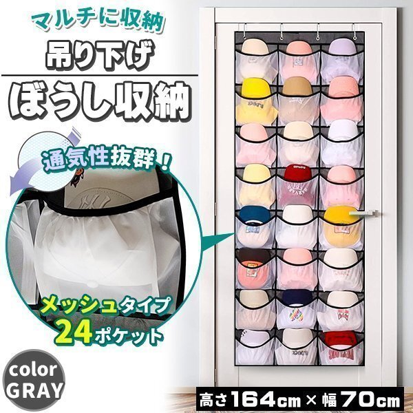 - 帽子掛け 吊り下げ収納 ドア掛け クローゼット 収納 24格 グレー 灰色 ウォールボックス 区分け収納 靴 シューズ キャップ 帽子収納ケース