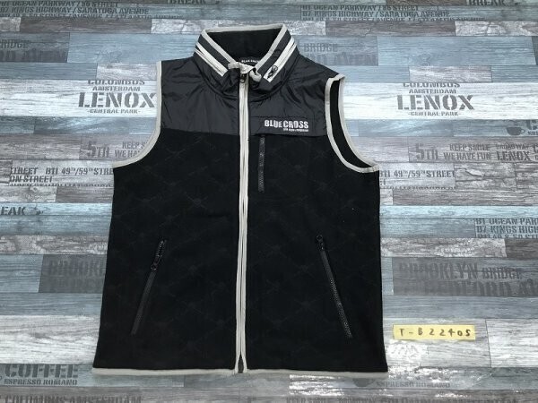 - BLUE CROSS ブルークロス レディース プリント入 フリース ジップベスト L 黒グレー