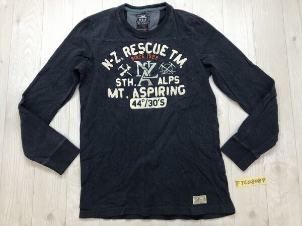 - N・Z・A・ メンズ フロッキープリント バックワンポイント刺繍 カットソー M ネイビー