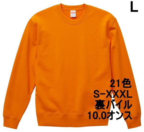 - スウェット L オレンジ トレーナー 10オンス 裏パイル 無地 定番 シンプル インナー 部屋着 普段着 丸首 クルーネック A635 504401 5044