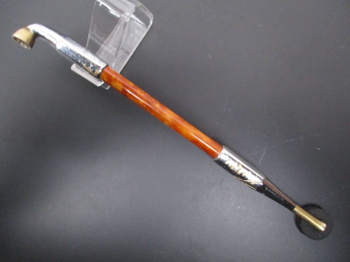 - 煙草入れ-≪如心≫形煙管【代表的な六角形, 銀(色)製, 金工彫刻, 金象嵌, 竹≪煤竹紋様≫胴 時代物 ★ 煙管★ 煙管入れ】
