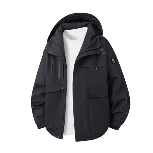 - [foxseon] ジャケット メンズ ブルゾン ゆったり カジュアル おしゃれ フード付き 無地 防風 ジップパーカー ジップ.