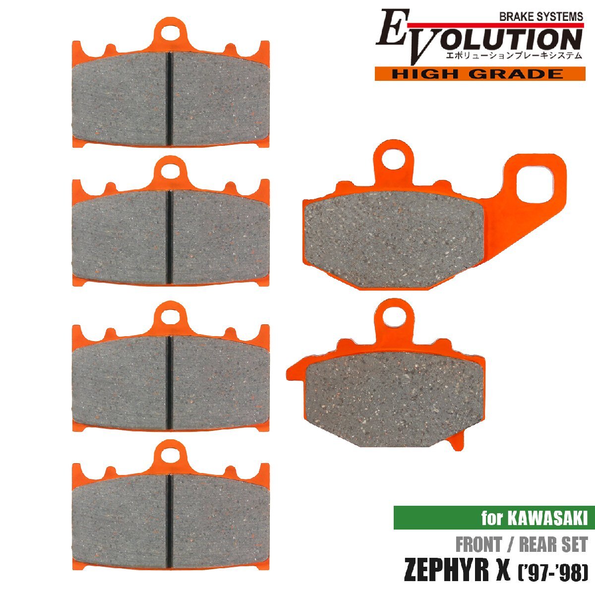- エボリューション EV-344HD EV-434HD ブレーキパッド ゼファー400カイ('97-'98)専用 前後セット 低ダスト 左フロント 右フロント リア