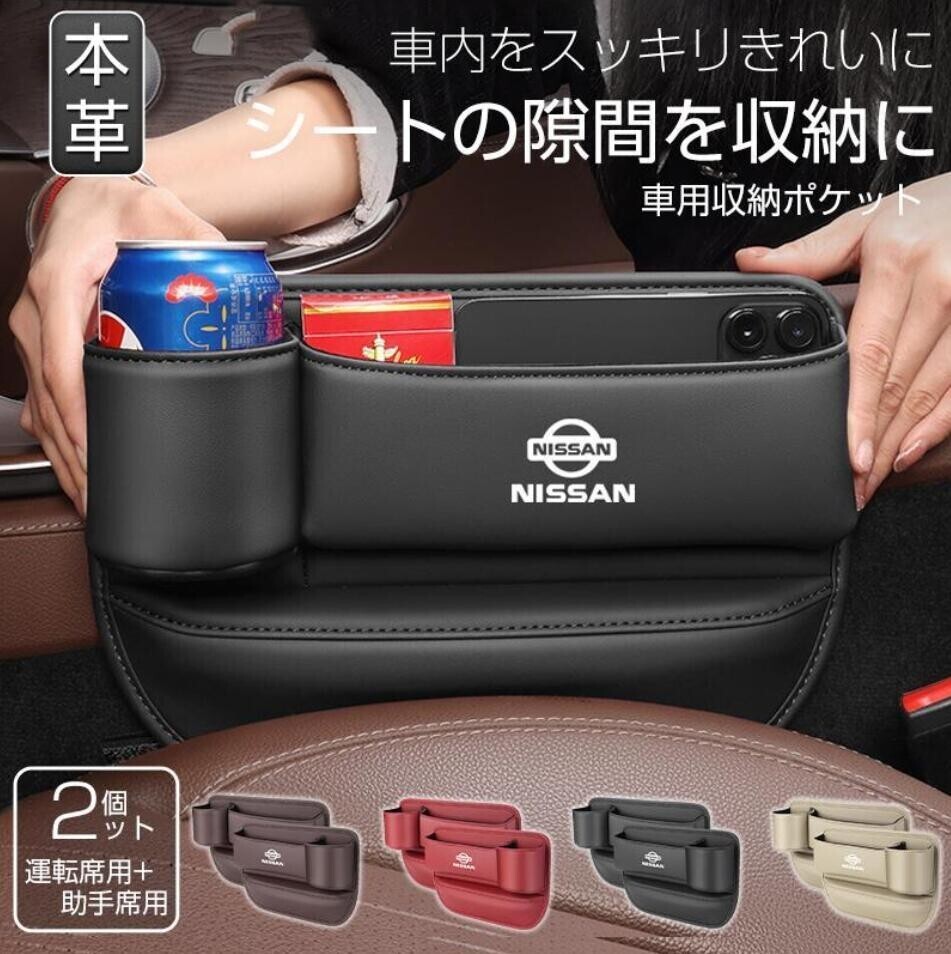 > 新作 日産 レザー センター隙間 サイド収納ボックス シートサイドポケット 左右2個 シートポケット コンソール カップホルダー