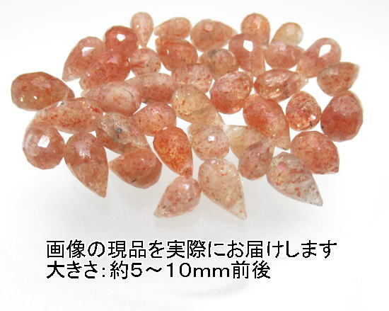 - (閉店価格)アウトレット(訳あり品)NO.5 サンストーン ブリオレットカット(38粒入り)<隠された力>インド加工 天然石現品