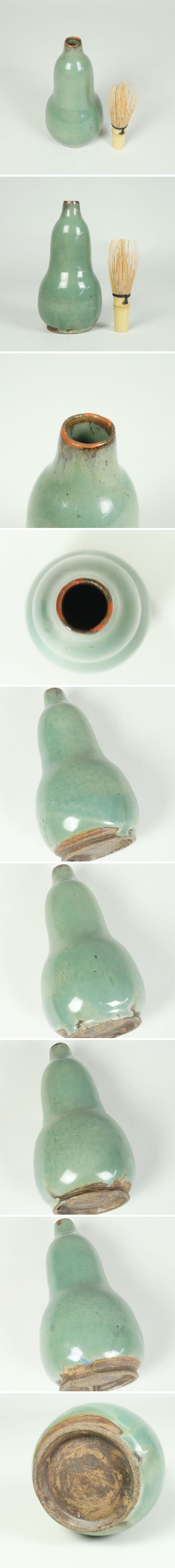 > 幕末~明治期 鞆皿山 瓢型 青磁 保命酒徳利 鞆徳利 備後 鞆の浦 酒器 陶磁器 骨董品 美術品 5442wqH