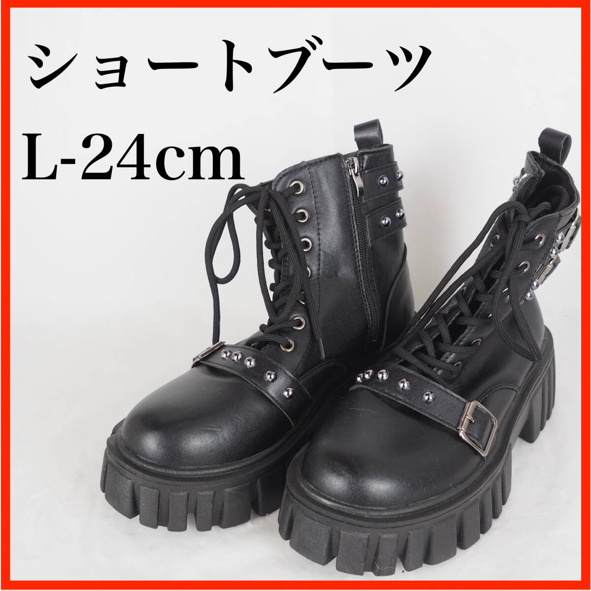 - GB0848*美品*レディース厚底ショートブーツ*L-24cm*黒