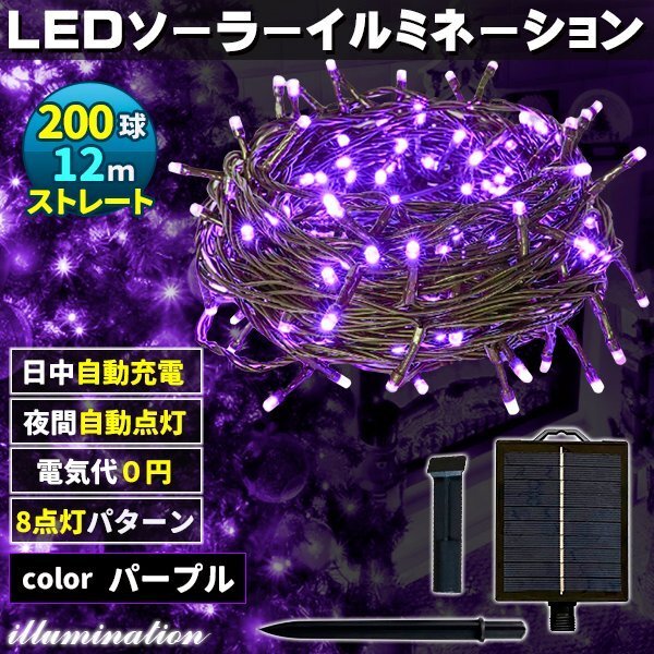 - ソーラー イルミネーション 屋外 クリスマス ストレート 屋外用 イルミネーションライト 200球 パープル