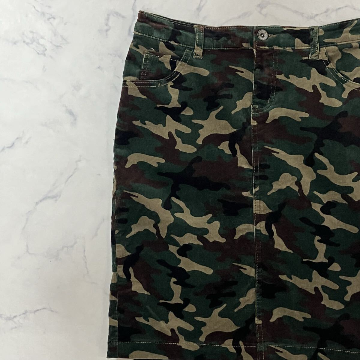 - 美品 LEPSIM レプシィム コーデュロイ 迷彩 カモフラ ベンツ ポケット ジップ ボタン ストレッチ ひざ丈 スカート グリーン ブラック M