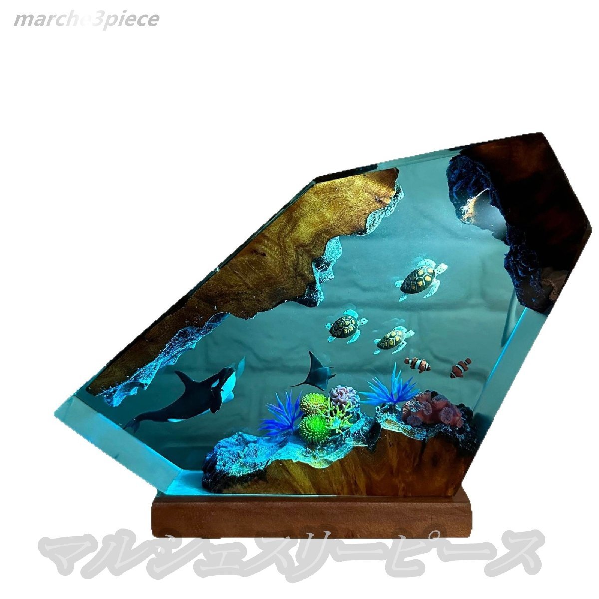 - 【海の巨匠シャチとウミガメ】レジンアートナイトライト 手作り おしゃれ インテリア 寝室 間接照明 ギフト プレゼント