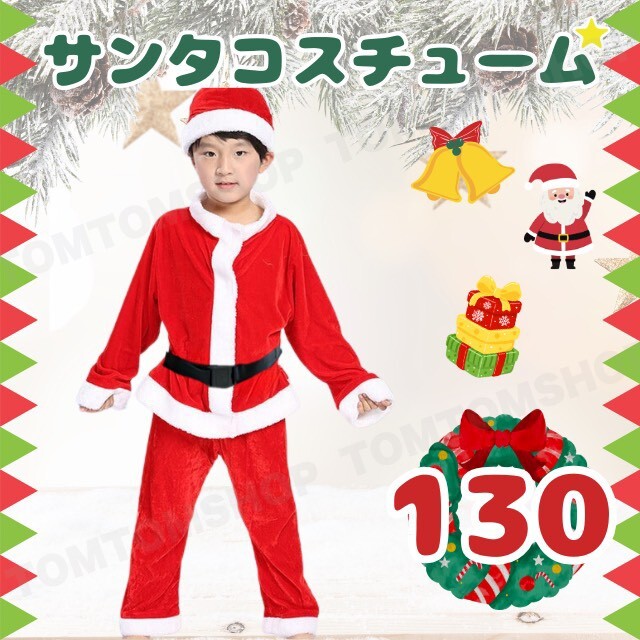- クリスマス サンタ 130 男の子コスチューム コスプレ サンタクロース ベビー キッズ 可愛い 衣装 セット 帽子