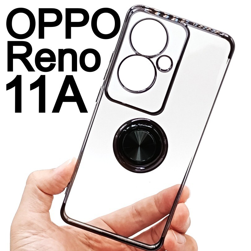 > OPPO Reno 11A スケルトン リング スマホケース ブラック(ゆうパケ)