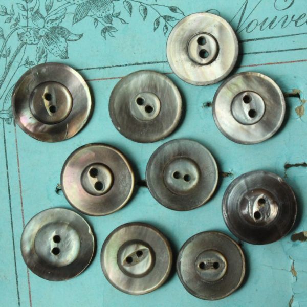 > 即決 猫目 シェルボタン 10個 φ12,13,15mm 厚2~3mm アソート 貝ボタン ヴィンテージ 黒 ブラック フランス輸入
