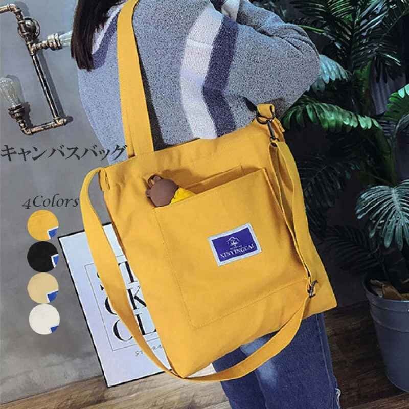 - キャンバスバッグ 2way トートバッグ 肩掛け キャンバストート A4 フリー イエロー