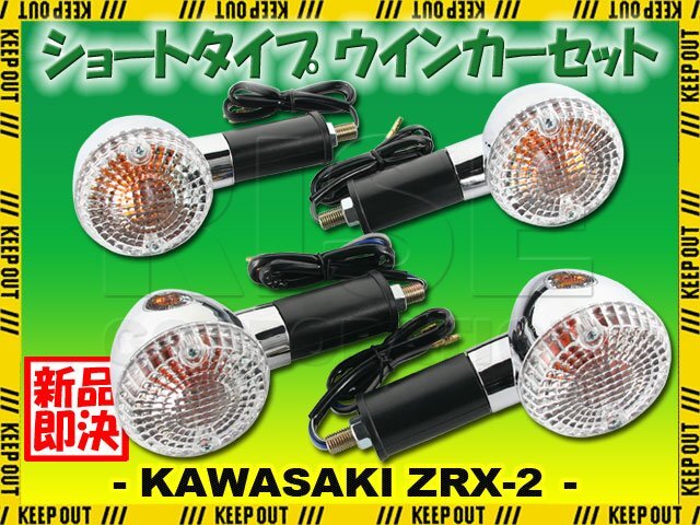 - カワサキ ZRX400-2 ZR400E F1~F8 純正タイプ フロント リア ウインカー ショート クリアレンズ 前後セット 砲弾型 メッキ クローム 交換