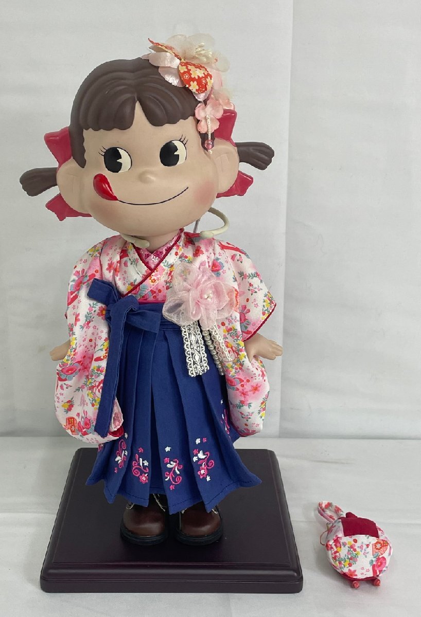 - 【1AP3642】1円スタート 不二家 ペコちゃん 台座付 フィギュア 高さ約36㎝ 袴 大正浪漫 和装 玩具 人形 ドール コレクション 現状品