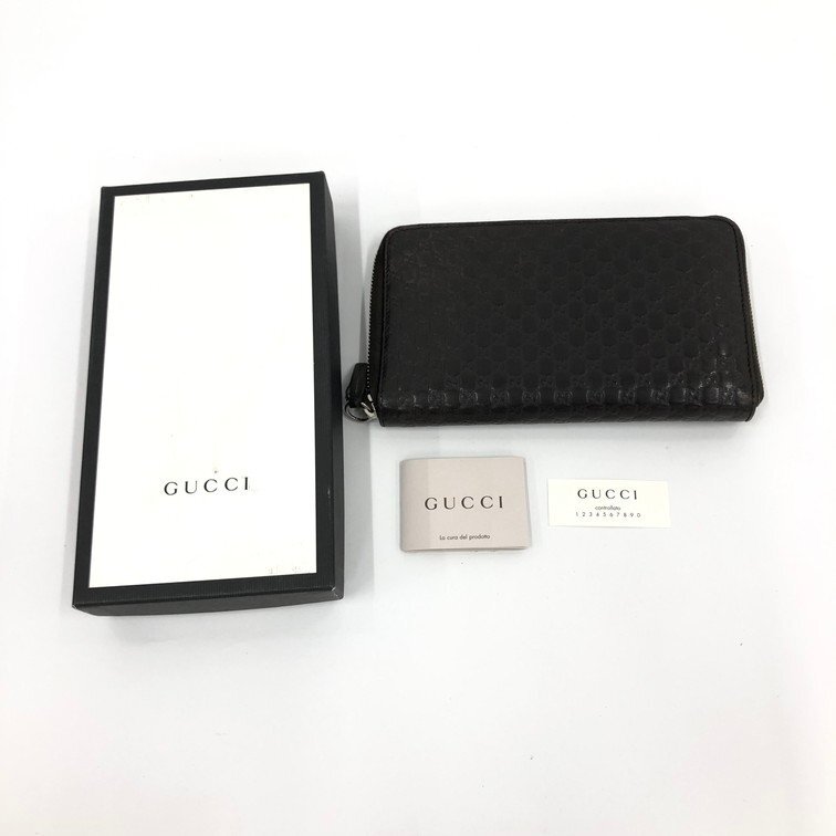 - GUCCI グッチ 財布 ラウンドファスナー マイクログッチシマ 391465・493075 箱付き【DKAC9037】