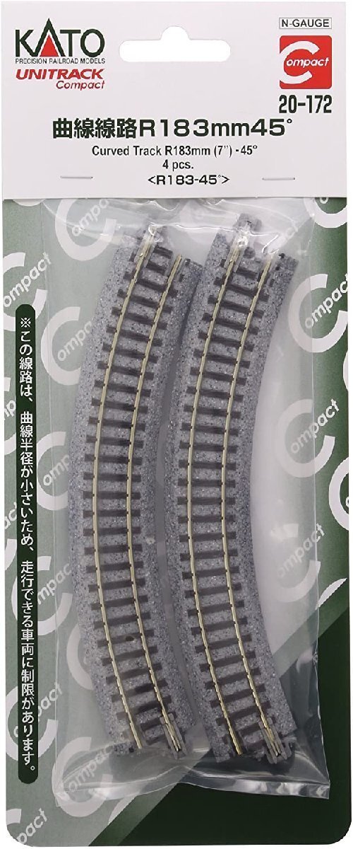 - 送料無料 KATO ユニトラックコンパクト曲線線路R183-45° 4本入 #20-172