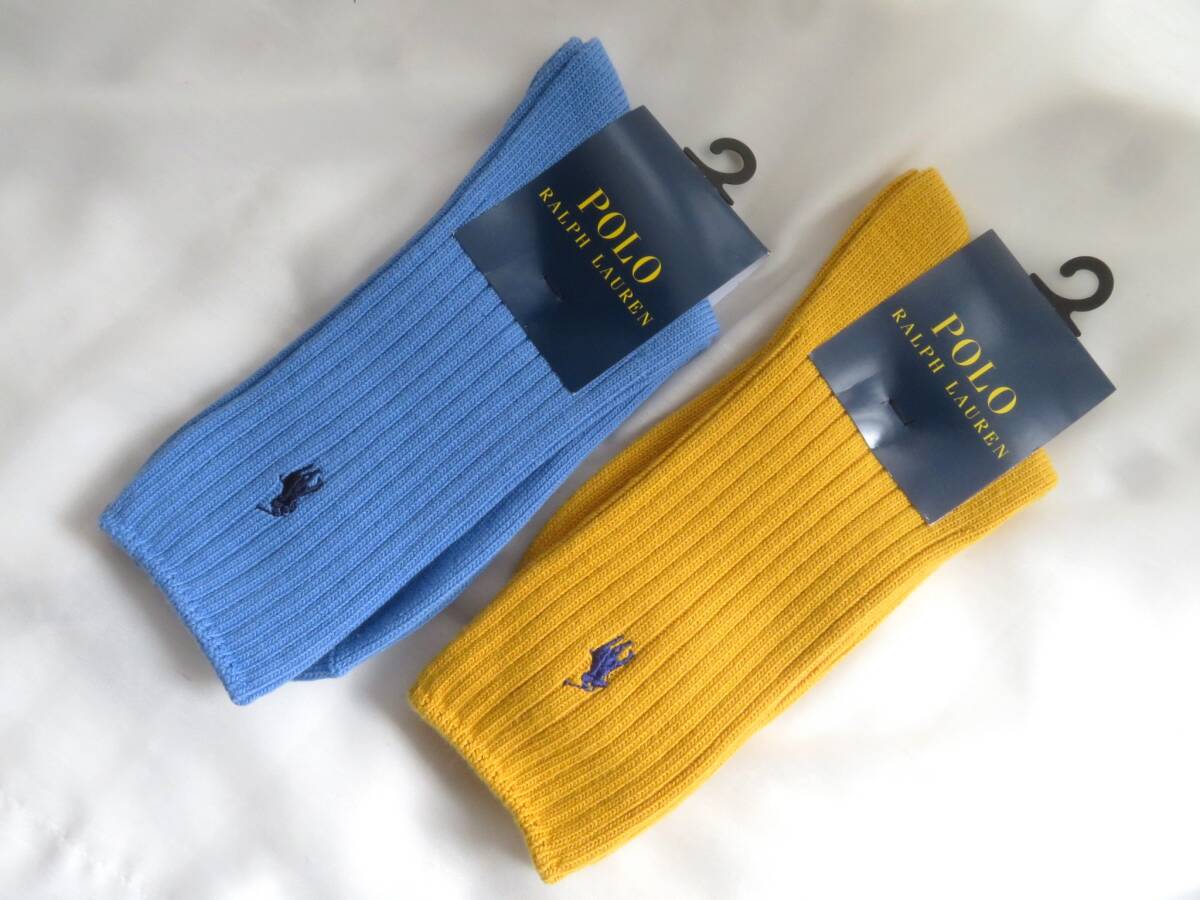 > 未使用 POLO RALPH LAUREN ポロ ラルフローレン ワンポイント 刺繍 カラー ソックス 25~27CM *サックス *ゴールド (株) ナイガイ