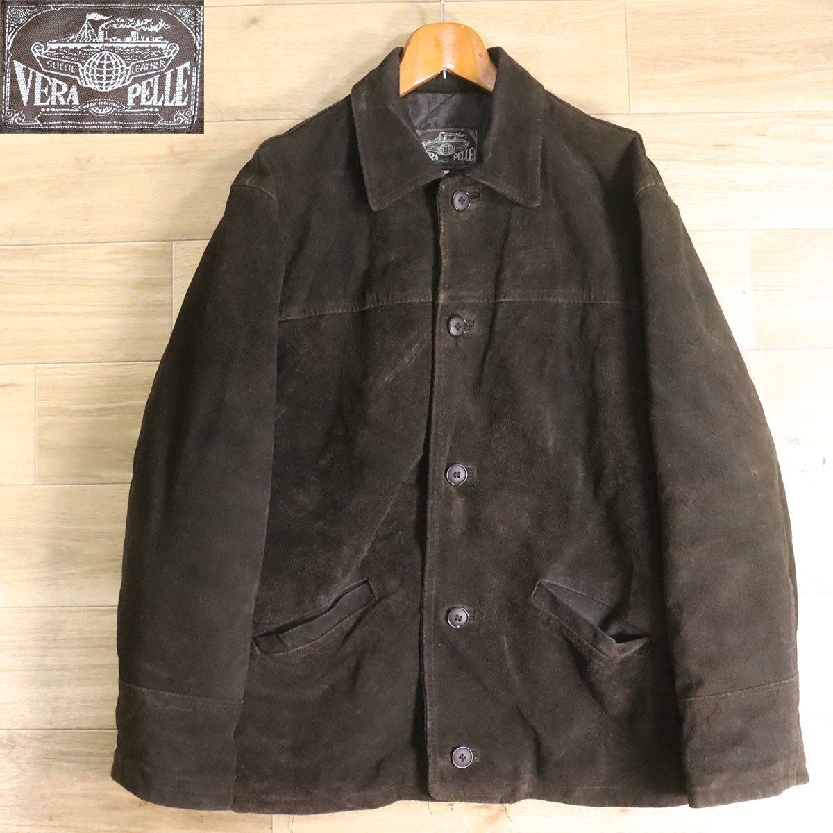 > I5R/Y6.2-8 ユーロ古着 VERA PELLE スエード レザージャケット 本革 革ジャン 皮ジャン スウェード レザーブルゾン L メンズ