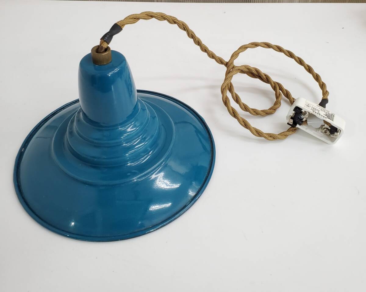 - ベル型 ペンダントライト ホーロー 青 ブルー レトロ アンティーク YAMAMOTO 点灯確認済