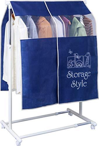 - アストロ ハンガーラックカバー 幅90cm ネイビー 不織布 ズレ防止ヒモ付き 613-23