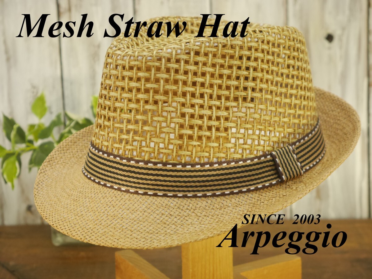 - 全国一律送料450円 編み込みメッシュ ストローハット ブラウン フェドラハット 男女OK パナマ ボルサリーノ 麦わら 中折れ