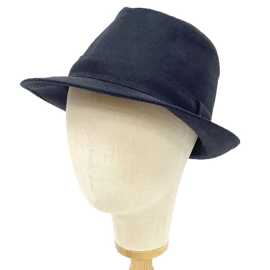 - 送料無料 HERMES エルメス リネン 帽子 中折れハット 57サイズ ネイビー メンズ aq12092