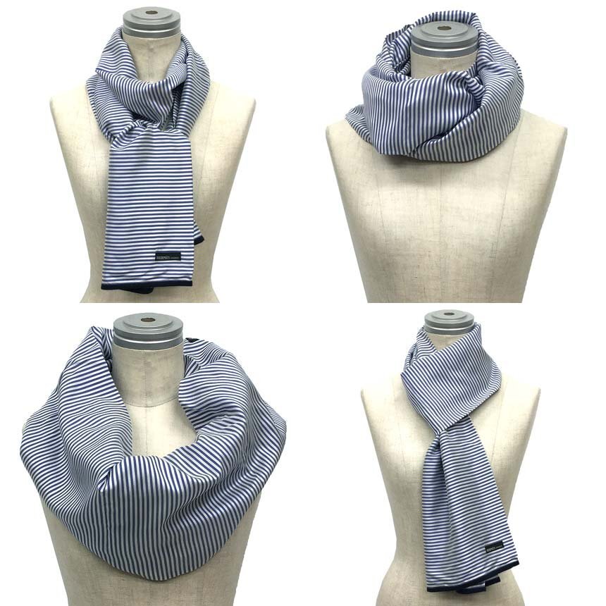 - 送料無料 セール HERMES エルメス 筒型 ストール ストライプ シルク ブルー系 メンズ レディース 男女兼用 美品 aq9155